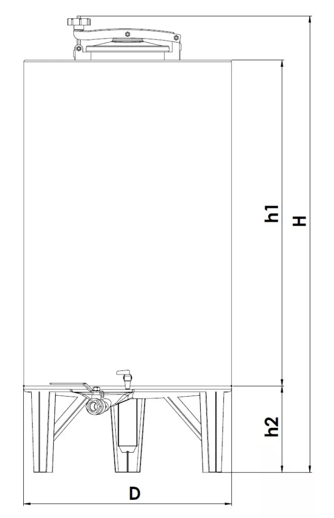 Toate recipientele sunt fabricate din oțel inoxidabil lucios. Robinetele laterale permit scurgerea usoara a lichidului depozitat. Rezervoarele din oțel inoxidabil sunt disponibile de la dimensiuni mici la dimensiuni industriale. Materialul rezervoarelor este aliaj de oțel AISI 304 rezistent la coroziune, grosimea plăcii este de 0,75 mm. Picioarele rezervoarelor cu fund conic sunt fixate, în timp ce picioarele celor cu fund neted pot fi îndepărtate cu ușurință, ca un suport.